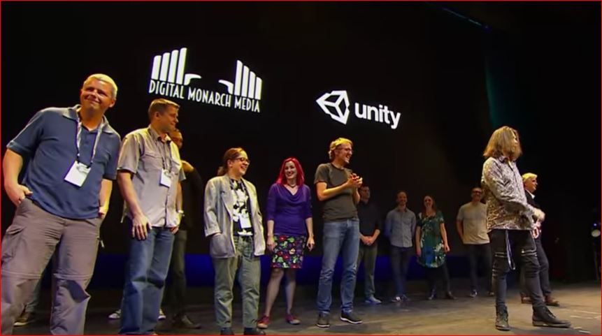 そして、CEOの John Riccitiello がマイクを取り、今話のあった Digital Monarch Media との M&A を発表。DMM の Wes Potter と他のメンバーも舞台にあがり、彼からも挨拶がありました。