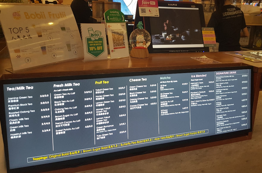 シンガポールで最も有名で人気のあるKOI Caféと同じくらいか。(価格比較は基本、KOI Caféベース)。標準のバブルミルクティはもうちょっと安いのを期待したんだけどな。