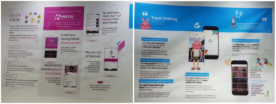 もう1つのARは、まだ開発中と言うことですが、上の右側の画像に奇妙なうさぎおじさんの絵がありますが、(彼ら曰く)このかわいいキャラが韓国の街を案内するツーリスト用のARアプリとのこと。