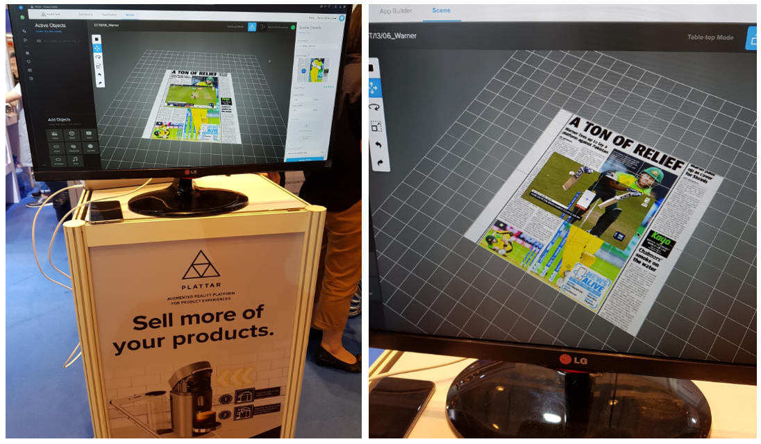 そして、オーストラリア の PLTTAR( https://www.plattar.com/ )と言う会社の展示。ここは完全に ARをメインで行っている会社とのこと。いろいろ ARの製品を見せて頂きました。