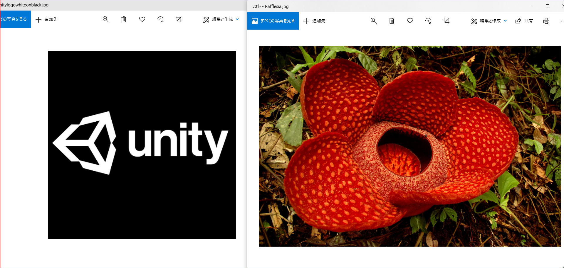 ここでは、デフォルトでサンプルに含まれていたマーカー画像「Rafleisa」と「Unity Logo」を試します。