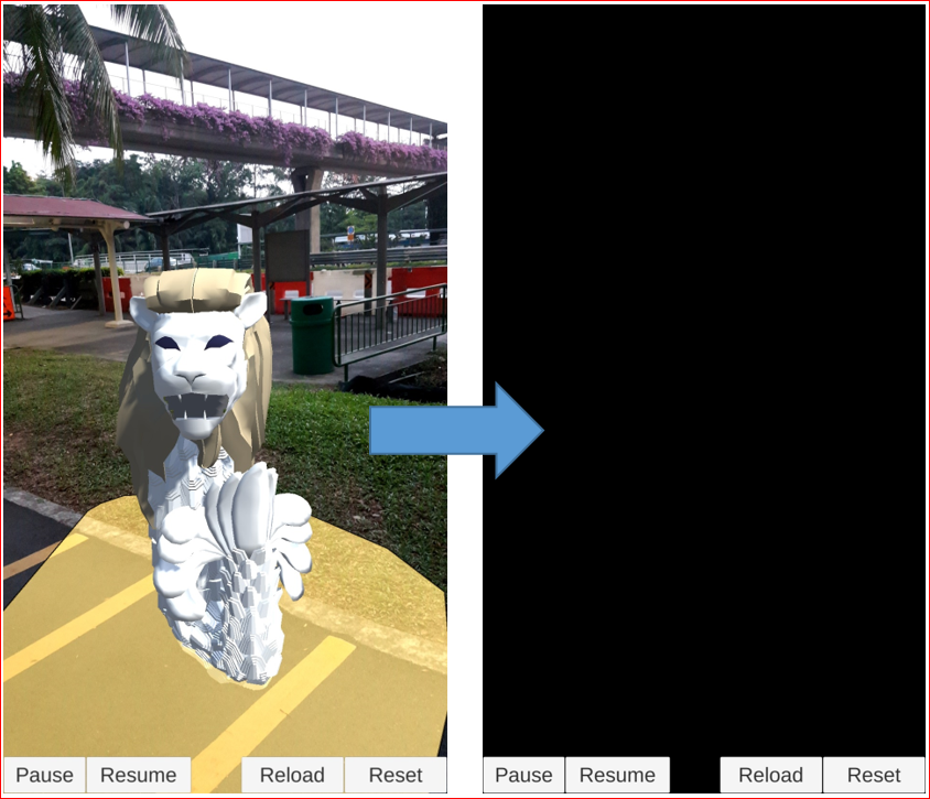 上記の画面のように Black Screenとなります。Canvas上の UIはうまく出ているようなので、カメラ画像がうまく表示されていないようです。