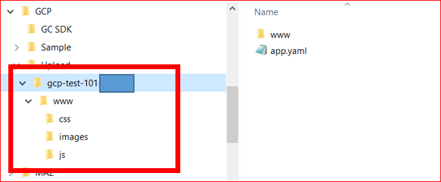 Google Cloud Platformにデプロイするローカル側のフォルダを作成しておきます。