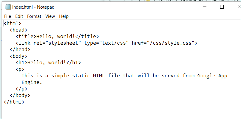 This is a simple static HTML file that will be served from Google App