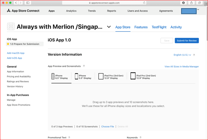 App Storeで表示される画像等の必要情報を入力していきます。特に画像のサイズが各デバイス用に決まっており、それぞれ用意する必要があるのでご注意ください。
