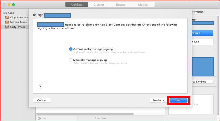 「App Store Connect」を選択して、「Next」をクリック。