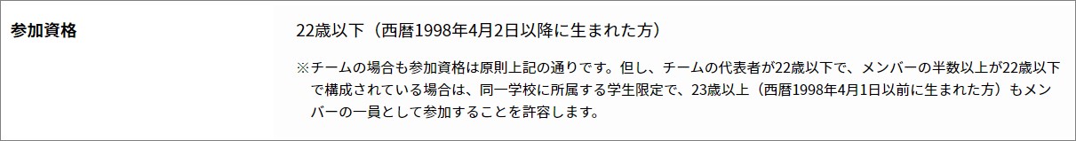 とても歴史のあるコンテストです。22歳までが対象で大学生も含まれています。そのため他のコンテストよりレベルが高くなってしまいます。他のコンテストの先にある目標としておいても良いかと思います。