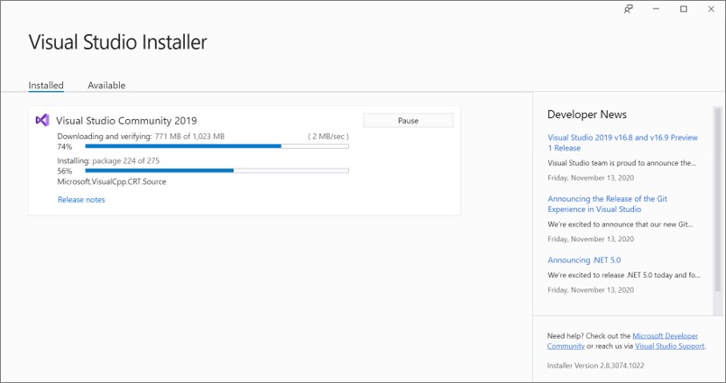 自動的にVisual Studioのインストールも開始されます。