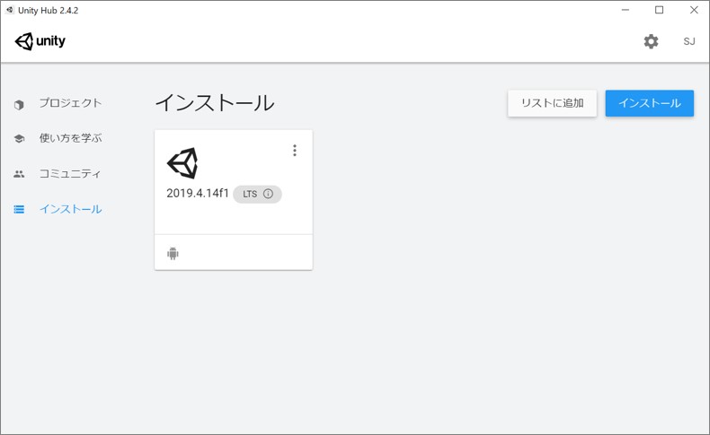 ⑤ Unityのインストール