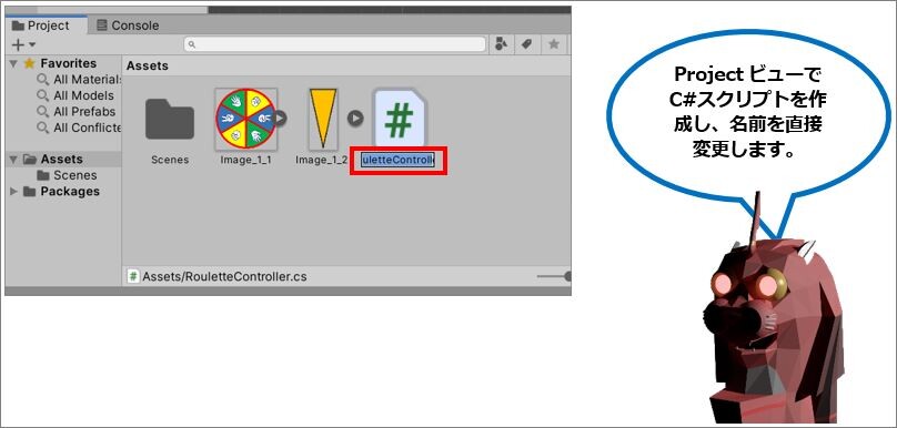 今作成されたスクリプトの名前を「RouletteController」に変更します。