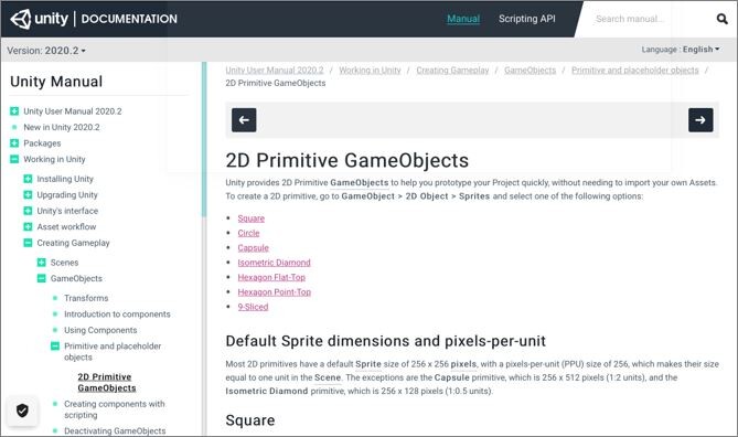 https://docs.unity3d.com/2020.2/Documentation/Manual/2DPrimitiveObjects.html