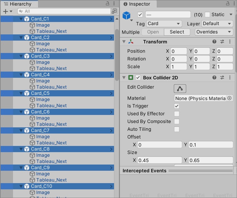 そして、これら親オブジェクトが選択された状態で、Inspectorビュー上の「Overrides」を開きます。