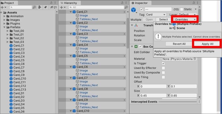 これで、大量のPrefab内の子オブジェクトへの変更が完了しました。
