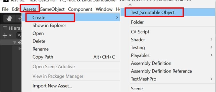 Assets > Create > クラス名(Test_Scriptable Object)