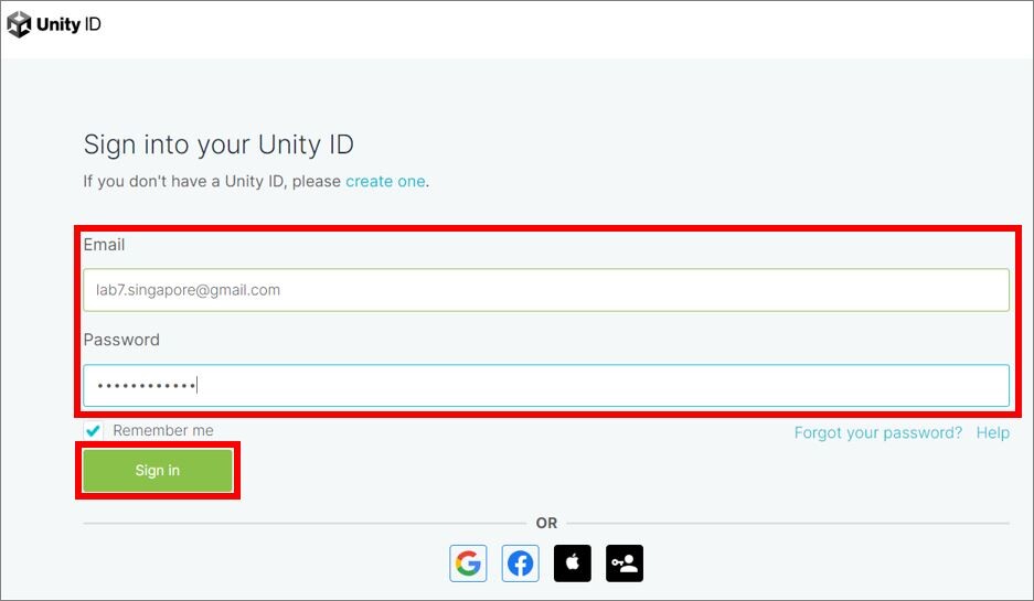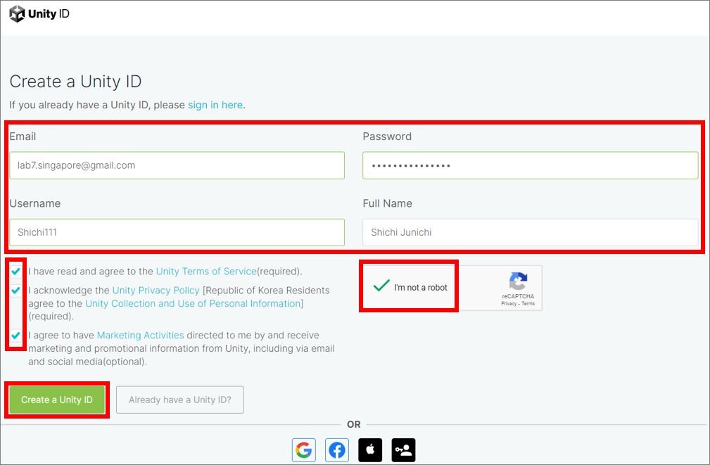 (Unity IDを既に持っている場合は、「Sign in」をクリックしてサインインします)